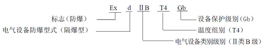 防爆标志:Ex d I Mb、Ex d IIB T4 Gb、、Ex d IIC T4 Gb。(注:Ex d IIC T4